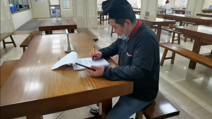 食堂師傅正在對(duì)驗(yàn)收回來的菜品進(jìn)行登記