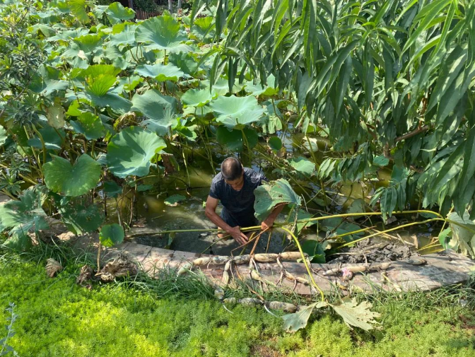 ▲ 挖藕可真是個(gè)體力活,沒一會(huì)園丁就大汗淋漓