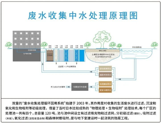 除此之外,“雙童1號樹”的土層下,還建有一個土壤層生物吸附過濾池,員工們使用后的生活廢水,經(jīng)過過濾后,會匯聚到“ 雙童一號樹”下進行生物吸附處理,處理后的水達到三類水的標準可以二次使用,每年為公司節(jié)省了一大筆費用支出,也讓樹木汲取到了充分的養(yǎng)料!