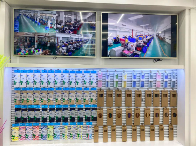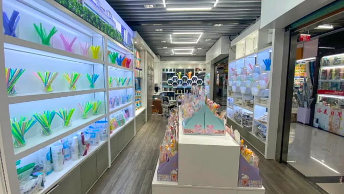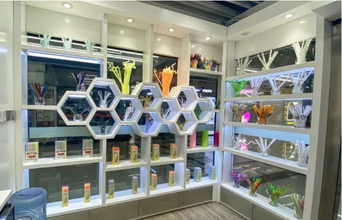 店鋪內(nèi)共設(shè)置了可降解吸管、創(chuàng)新吸管、藝術(shù)吸管、超市流通吸管等品類的吸管產(chǎn)品展示區(qū),以及辦公區(qū)、茶水接待等區(qū)域,可謂是分工明確,井然有序!