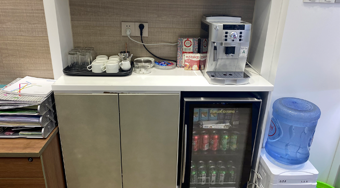 除此之外,考慮到客戶的生活需求,“雙童”的茶水接待區(qū)也是采取了客人到企業(yè)洽談時(shí)的服務(wù)標(biāo)準(zhǔn),專門設(shè)置了冰箱、咖啡機(jī)、紅茶機(jī)。茶點(diǎn)糖果、咖啡飲料也是一應(yīng)俱全,這讓業(yè)務(wù)員能夠在客戶來到這里洽談商務(wù)時(shí)提供貼心優(yōu)質(zhì)的服務(wù)!