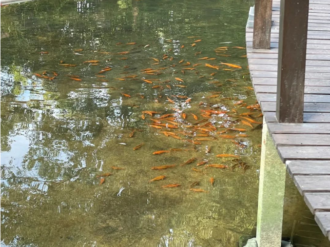這新的湖水一更換,才發(fā)現(xiàn)原來湖里多出了這么多小魚!瞧,上百條手掌長的小錦鯉正在湖里嬉戲,看來這塊地方確實(shí)是風(fēng)水寶地,原先的魚兒們都過得很舒適呢!