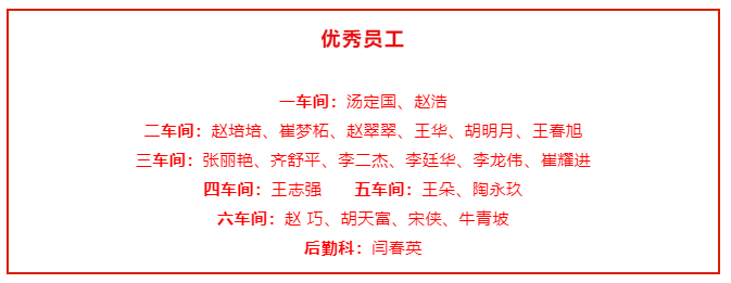 當(dāng)頒獎(jiǎng)音樂響起時(shí),現(xiàn)場所有員工鼓掌表示祝賀,總經(jīng)理李二橋?yàn)椤皟?yōu)秀員工”們頒發(fā)榮譽(yù)證書和厚厚的激勵(lì)紅包。在場員工們都深深地感受到了公司對(duì)一線員工的重視及肯定!相信對(duì)每一位“優(yōu)秀員工”來說都意義非凡,對(duì)全體員工來說也是莫大的鼓舞和激勵(lì)!
