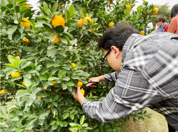 細(xì)心剪下橘子,不傷害樹(shù)枝