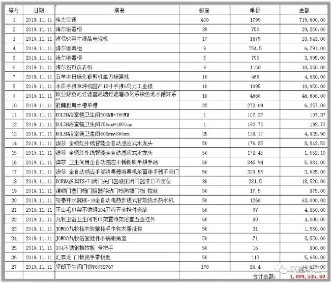 在后續(xù)調(diào)查跟進(jìn)的過(guò)程中,吸管妞發(fā)現(xiàn)這五臺(tái)洗衣機(jī),也算是“雙童”的“老員工”啦!2019年的雙十一,“雙童”董事長(zhǎng)樓仲平聯(lián)合團(tuán)隊(duì)一起購(gòu)買(mǎi)了400臺(tái)格力空調(diào)、39臺(tái)海爾消毒柜、80臺(tái)進(jìn)口閉門(mén)器、門(mén)鎖170把、9臺(tái)投幣洗衣機(jī)、17臺(tái)各型號(hào)彩電、9臺(tái)洗衣機(jī)..... 為二期廠房增添設(shè)備,所有設(shè)備都采用高品質(zhì)的品牌,直接將一百多萬(wàn)貢獻(xiàn)給了天貓!