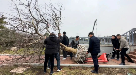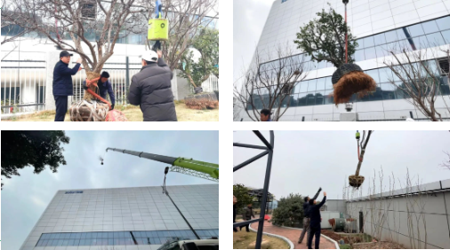其實(shí)啊,主要是因?yàn)橘徺I的果樹都是重量級(jí)“嘉賓”,所以“雙童”都是通過大吊機(jī)將這些果樹運(yùn)送上空中生態(tài)園的!我們的當(dāng)家人樓總更是親自從旁指揮,護(hù)送大樹成功上樓!