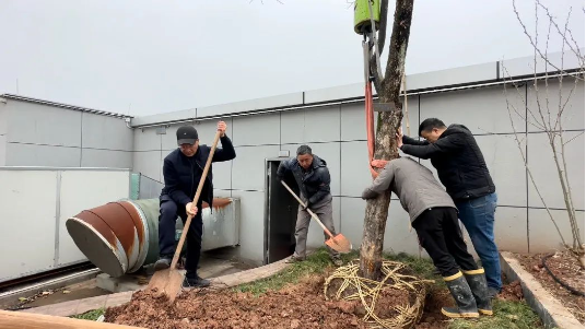 在空中花園里,大家嘿呦嘿呦的正在賣力地栽樹。俗話說得好,團(tuán)結(jié)就是力量,大家一起培土、踩實(shí)、澆水,每道工序都一絲不茍,每個(gè)流程認(rèn)真細(xì)致!