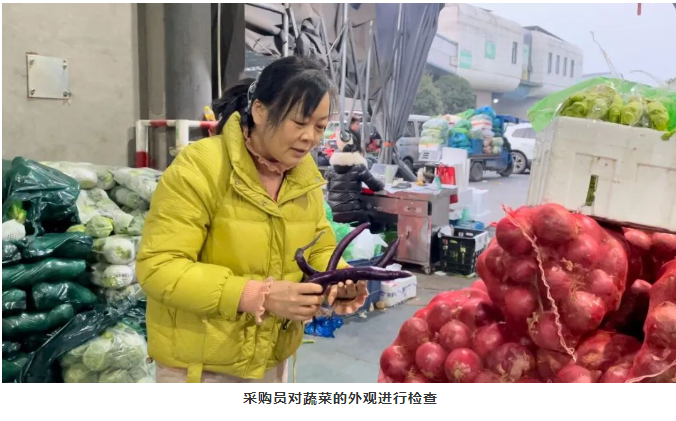 采購現(xiàn)場,每一種菜品都要經(jīng)過采購員的嚴(yán)格檢查,不僅是要對品種進(jìn)行對比,選出最好吃的種類,還要考量菜品的質(zhì)量,外觀得要好看,不管是茄子還是土豆都要有“顏值”。