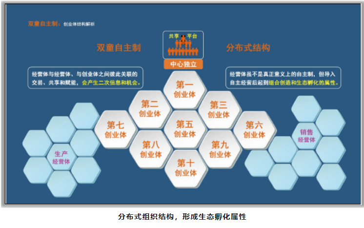 通過獨立核算、自負盈虧的獨立經(jīng)營模式,孵化并培養(yǎng)內(nèi)部經(jīng)營實體和創(chuàng)業(yè)實體,賦能一批優(yōu)秀管理者逐漸向經(jīng)營者和創(chuàng)業(yè)者轉(zhuǎn)變。通過全新探索,鼓勵有夢想、想創(chuàng)業(yè)的員工協(xié)同創(chuàng)造,實現(xiàn)企業(yè)與員工共同成長,開啟企業(yè)與員工追求“共同富?!钡娜缕?。