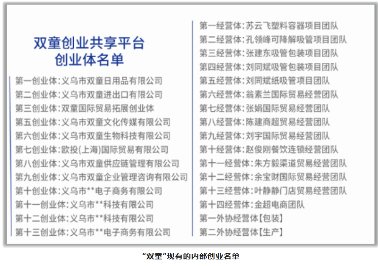 近期,金華新聞客戶端報道了“雙童”與眾不同的新模式:“把企業(yè)規(guī)模做小,把創(chuàng)業(yè)矩陣做大”(戳文末“閱讀原文”)。董事長樓仲平把“在公司內(nèi)部培養(yǎng)出五十位老板”、讓員工“共同富裕”作為自己的使命追求,而這些都是通過”雙童創(chuàng)業(yè)共享平臺”來實現(xiàn)的。