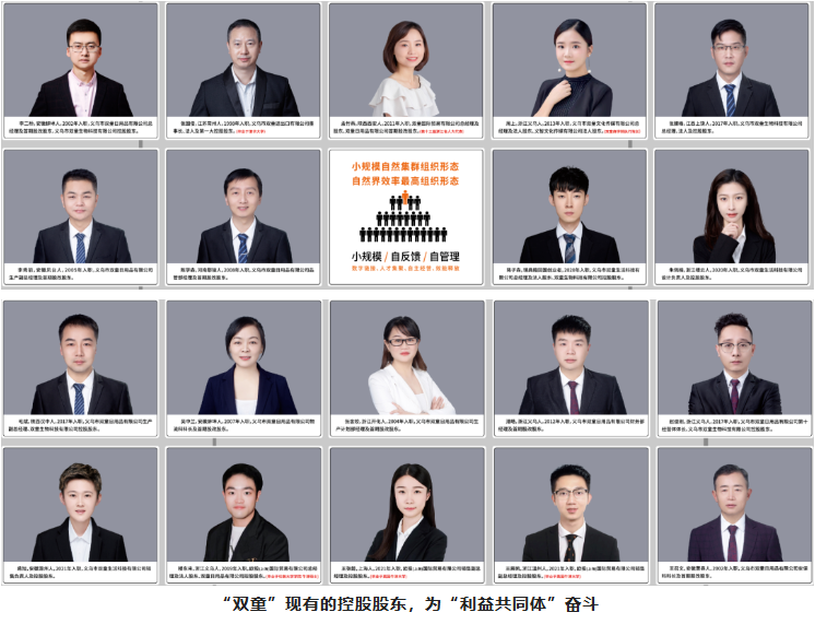 近期,金華新聞客戶端報道了“雙童”與眾不同的新模式:“把企業(yè)規(guī)模做小,把創(chuàng)業(yè)矩陣做大”(戳文末“閱讀原文”)。董事長樓仲平把“在公司內(nèi)部培養(yǎng)出五十位老板”、讓員工“共同富?!弊鳛樽约旱氖姑非螅@些都是通過”雙童創(chuàng)業(yè)共享平臺”來實現(xiàn)的。