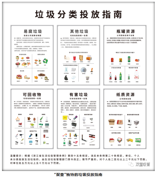 由于“雙童”餐廳的垃圾分類工作十分具有特色,還被浙江衛(wèi)視、義烏電視臺等各大媒體記者戲稱為“雙童‘五個碗’的垃圾分類學”。除此之外,”雙童“還將餐廳產(chǎn)生的濕垃圾供應給養(yǎng)殖戶作飼料回收,從而把企業(yè)所有的濕垃圾全部消滅!