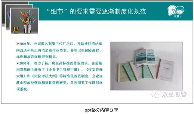 第二章則是本次課程的重中之重。樓總結(jié)合我們“雙童”自身的真實案例,來說明實施精細(xì)化管理對產(chǎn)品質(zhì)量的重要性!通過和日本客戶的合作,我們一次次地提升,一次次地逼著自己做更高的要求和改變,以此來達(dá)到客戶的需求,更通過這些舉措,慢慢地改變我們自己的產(chǎn)品質(zhì)量和員工素質(zhì)。