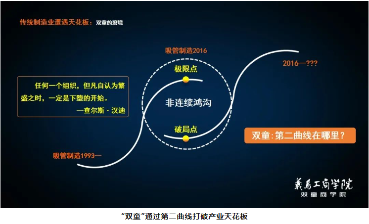經(jīng)過(guò)深度的思考、分析后,“雙童”開(kāi)始突破原有“只做一根吸管”的思維禁錮,發(fā)展“第二曲線”,通過(guò)組織變革,最大程度地激活員工的創(chuàng)造力。