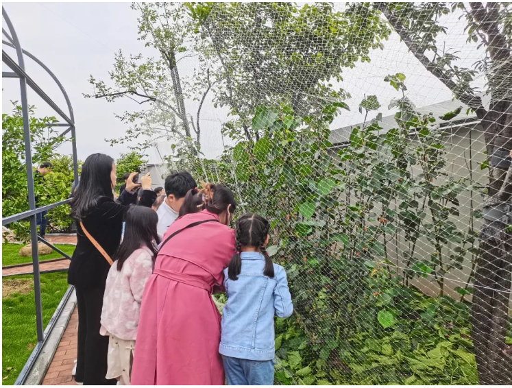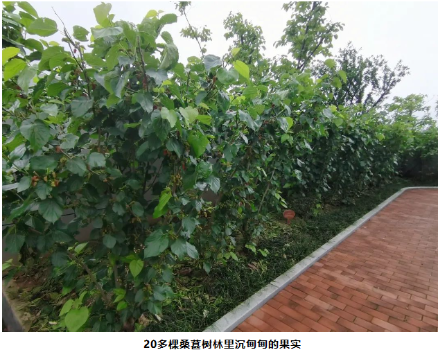 由于“雙童”的生態(tài)環(huán)境優(yōu)美,有不少鳥類喜歡在空中花園盤旋。剛成熟的桑葚美味極了,不少鳥兒都爭先啄食。為了讓更多果實留存下來,讓員工和遠道而來的客人們可以品嘗到新鮮美味的果實,園丁叔叔給桑葚林裹上了紗網(wǎng)。