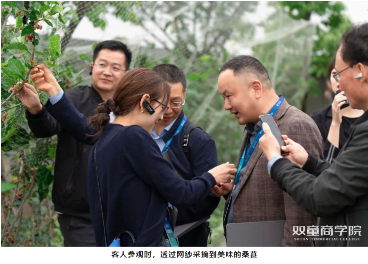 這樣長在空中花園的桑葚,讓人感受到“雙童”花園式工廠的溫馨與趣味十足。同時,這樣的珍惜利用土地資源,不少學員都為“雙童”的人性關(guān)懷與愛護自然的態(tài)度點贊!