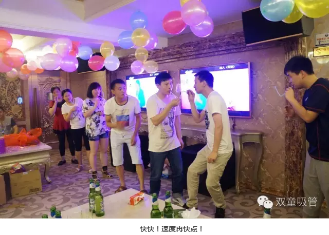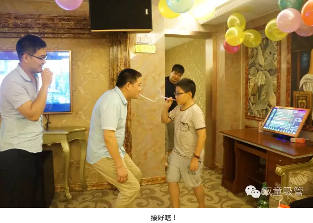 酒足飯飽,開啟游戲環(huán)節(jié)!后勤部門為壽星準(zhǔn)備的小游戲,大家可是很踴躍地參與呢!瞧!壽星們被分為四個隊伍,嘴叼著吸管傳杯子,用時最短的隊伍還有豐厚的獎品呢!