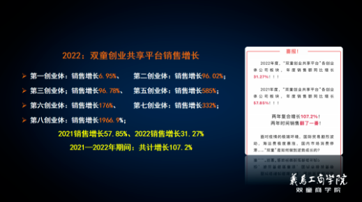 過去這兩年,雙童創(chuàng)業(yè)共享平臺(tái)分別實(shí)現(xiàn)銷售增長57.8%、31.2%。相比2019年,疫情3年企業(yè)整體營收逆勢增長了2.6倍,30多名員工從“打工者”變身為“老板”。