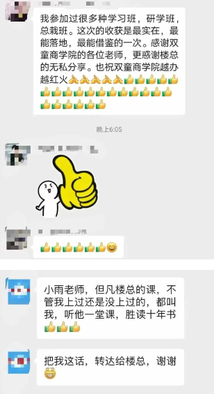 游學(xué)的最后是交流互動環(huán)節(jié),“雙童”董事長樓仲平或總經(jīng)理李二橋,將會與大家進行分享,以問答互動的形式展開,為學(xué)員們解答參觀過程中疑惑的問題。在你來我往的“思維碰撞”過程中,避免走馬觀花,找到“雙童”經(jīng)營過程中的科學(xué)管理邏輯,實現(xiàn)創(chuàng)業(yè)思維的升階!