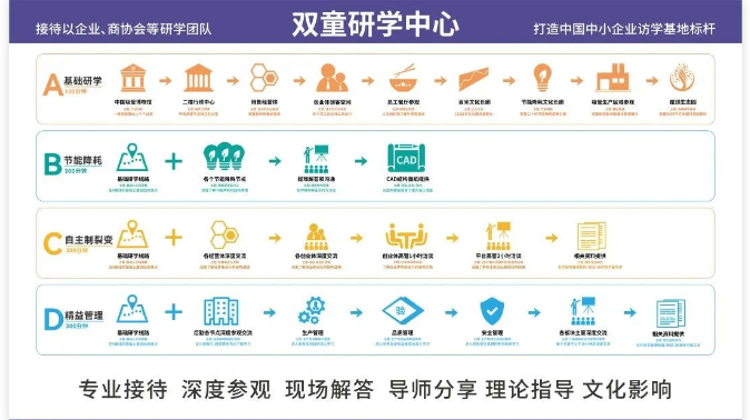 “雙童”第十創(chuàng)業(yè)體——雙童研學(xué)中心,于2023年3月成立。一直以來,“雙童”獨特的企業(yè)經(jīng)營理念,吸引了眾多社會關(guān)注,每年都有大量的社會組織和高校團體等前來調(diào)研參觀。為更好地賦能,組建了雙童研學(xué)中心,系統(tǒng)化為更多對雙童模式感興趣的人們提供場景學(xué)習(xí)。