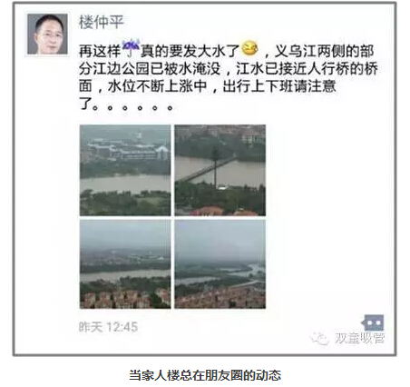 6月29日 一大早起來,朋友圈到處都在傳“發(fā)大水”的消息,我們的當(dāng)家人樓總也在朋友圈里發(fā)布實(shí)時(shí)消息提醒大家注意安全。不過吸管妞卻覺得,“鐵公雞”當(dāng)家人肯定在偷偷心疼這些雨水,要是都像雙童一樣收集起來,那該有多好呀!