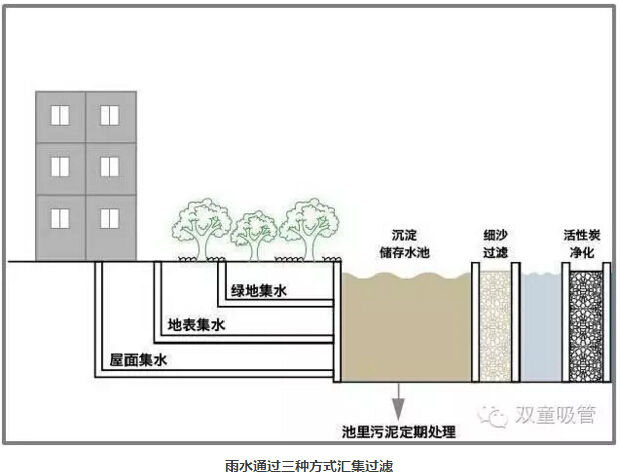 如此實(shí)用的系統(tǒng)是如何形成的呢?妞今天就給大伙來說說!其實(shí)秘訣就是在屋頂、路面、綠化帶中做好雨水收集點(diǎn),用地下管道把它們連成一個(gè)整體,經(jīng)過科學(xué)過濾,匯集到一個(gè)占地700多平方米、總裝水容量近4000噸的雨水收集池。