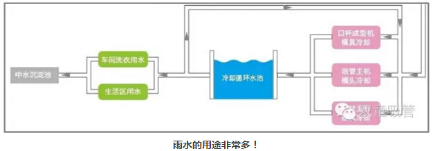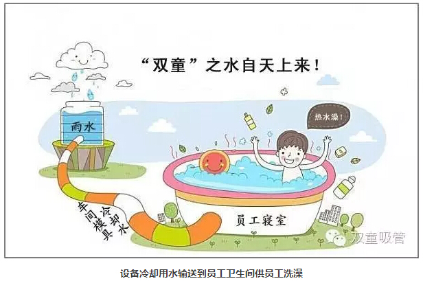這些雨水在經(jīng)過過濾后就可以作為消防用水、車間模具冷卻用水,還能用作車間洗衣用水和生活區(qū)用水呢!員工洗澡的熱水不耗一度電,不耗一度煤,全部是雨水收集好后,冷卻水在設(shè)備上形成的余熱水收集輸送到員工寢室。