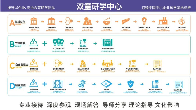 “雙童”第十創(chuàng)業(yè)體——雙童研學(xué)中心,于2023年3月成立。一直以來,“雙童”獨(dú)特的企業(yè)經(jīng)營理念,吸引了眾多社會關(guān)注,每年都有大量的社會組織和高校團(tuán)體等前來調(diào)研參觀。為更好地賦能,組建了雙童研學(xué)中心,系統(tǒng)化為更多對雙童模式感興趣的人們提供場景學(xué)習(xí)。