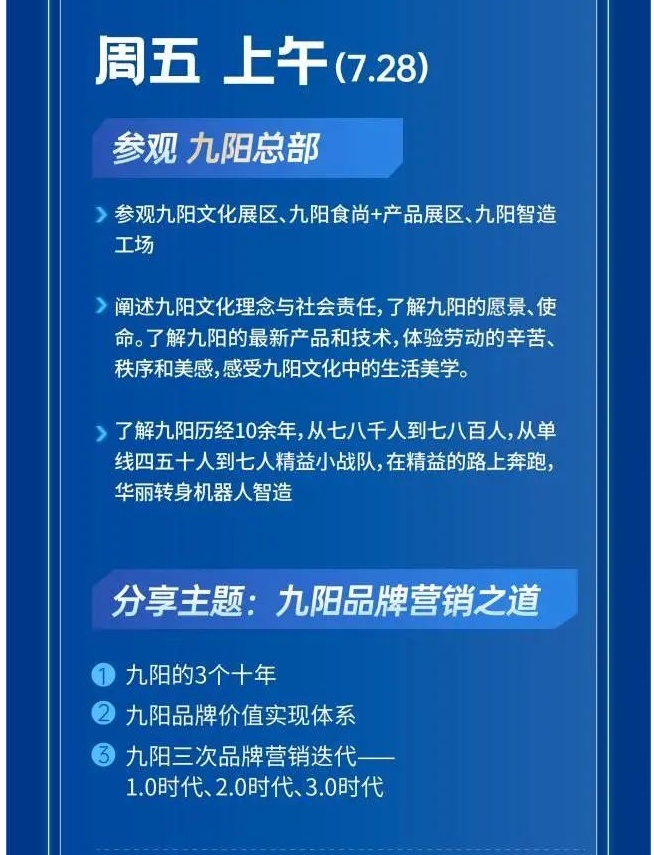 通過參觀展廳和自動(dòng)化生產(chǎn)線,以及企業(yè)專業(yè)人員講解關(guān)于九陽、雙童和義烏小商品城的特色企業(yè)文化,更有思享會(huì)全面真實(shí)的案例呈現(xiàn)。
