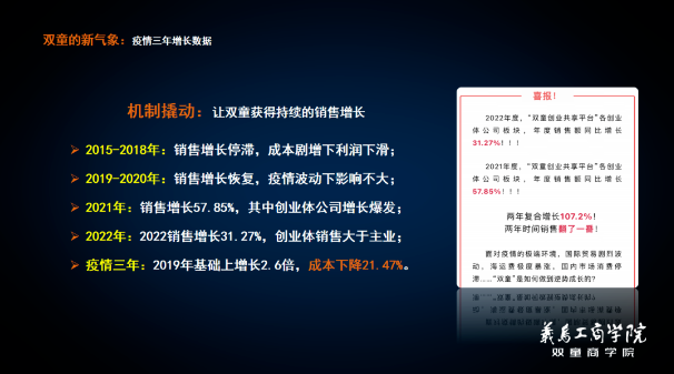 走過百米文化長廊,通過文字和圖片見證了“雙童”不同階段的成長,了解“雙童”企業(yè)經營的方方面面。獨特的“家文化”與“組織關系三原則”讓調研組們紛紛點贊,尤其是近幾年讓“雙童“實現(xiàn)逆勢增長的自主制創(chuàng)業(yè)裂變機制,這種組織創(chuàng)新更是讓他們認可并大為稱贊。