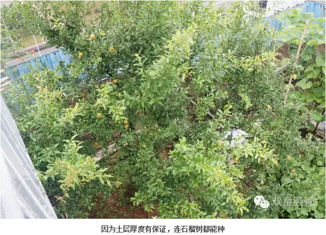 首先,我們樓頂菜園的土壤厚度達(dá)到了1.2-1.5米,有了這么厚的土壤保證,我們才能種起來各類果樹。其次,我們當(dāng)家人樓仲平早在大樓設(shè)計(jì)之初,就已經(jīng)把這些承重、滲水的問題考慮進(jìn)去,并通過科學(xué)的設(shè)計(jì)解決了問題,就連土壤都是大樓結(jié)頂之時(shí),趁著塔吊還沒拆,讓塔吊直接把土壤吊到九樓的!