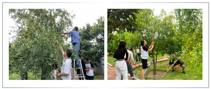用手搖、用竹竿敲、爬梯子摘、在樹下?lián)炻?/strong>為了能裝滿自己的小籃子,大家也都沒閑著,“各顯神通”,現(xiàn)場是一片“手忙腳亂”!