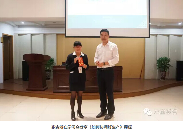 生產(chǎn)計(jì)劃工作有時(shí)很繁瑣,她要對(duì)生產(chǎn)訂單和任務(wù)進(jìn)行協(xié)調(diào),做整個(gè)生產(chǎn)安排和銷售銜接統(tǒng)籌的工作,所以她的電話一直是公司里最多的那一個(gè)。而在“雙童”開學(xué)習(xí)會(huì)以來,她也先后作為講師講了好幾堂的課,給大家培訓(xùn)生產(chǎn)計(jì)劃相關(guān)知識(shí)。她說,在給大家?guī)硖嵘耐瑫r(shí),還給自己帶來了前所未有的“講師”體驗(yàn),這是非常難忘的經(jīng)歷!