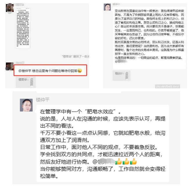 每一個(gè)站點(diǎn)參訪結(jié)束,導(dǎo)師樓仲平都會(huì)利用“巴士課堂”對(duì)參訪站點(diǎn)進(jìn)行總結(jié),并且在一天的參訪結(jié)束之后,會(huì)在交流群以“批改作業(yè)”的形式,對(duì)學(xué)員提出的問(wèn)題更是“知無(wú)不言”!讓每一位學(xué)員的游學(xué)之旅,都不是走馬觀花,而是有深度的研學(xué),最終滿載而歸!