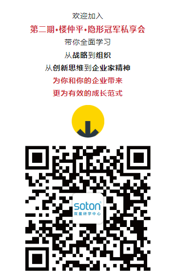 “樓仲平隱形冠軍私享會”是以我的名字作為背書的一個小范圍思想圈子,既然用我的名字作為背書,我將會用我的人格作為自己終生的承諾,她將會成為我一生中最為重要的思想載體,我將會用心所極、竭盡全力來陪伴所有的同學們更快成長。