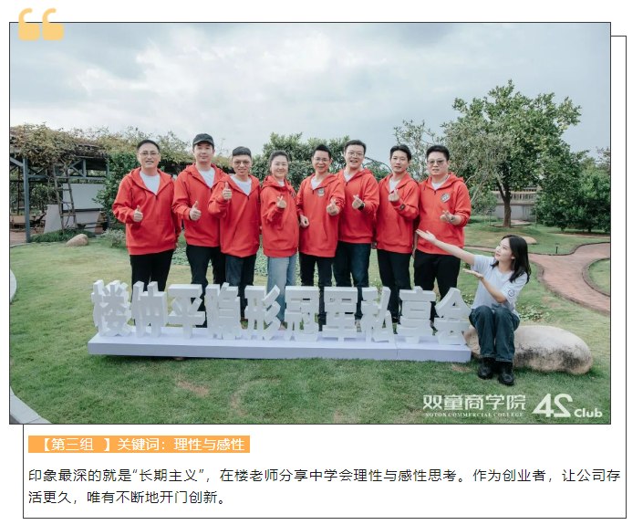 在隱形冠軍私享會(huì)第一模塊中,還開展了一次別有生趣的現(xiàn)場(chǎng)課堂,師生齊聚在“雙童”標(biāo)志性的“一號(hào)樹”樹下。