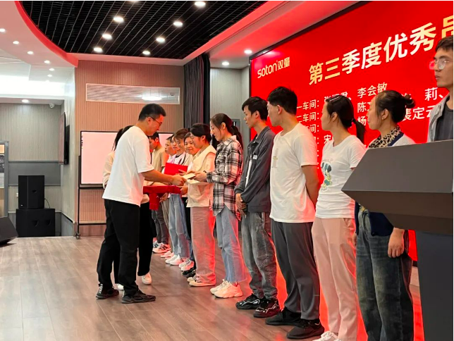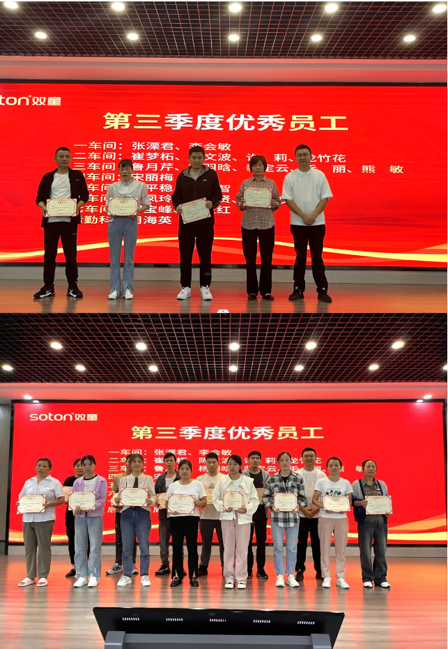 當(dāng)頒獎音樂響起,現(xiàn)場氛圍瞬間被點(diǎn)燃,在陣陣掌聲中,“優(yōu)秀員工”獲得者走向舞臺中央,在聚光燈下,總經(jīng)理李二橋依次為他們頒發(fā)榮譽(yù)證書。相信這一刻,對每一位“優(yōu)秀員工”來說都意義非凡,對臺下的全體員工也是莫大的鼓舞!