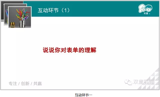 學(xué)習(xí)會當(dāng)然少不了互動啦!這不,一開場互動就開始啦!“說說你對表單的理解?”話題剛落,童鞋們就爭先恐后地回答問題啦!表單是結(jié)算的依據(jù)、表單可以記錄信息...... 大家的答案都層出不窮,不過很有道理呢!