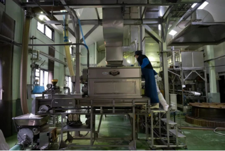 在社長的帶領(lǐng)下觀摩工人釀酒第一現(xiàn)場