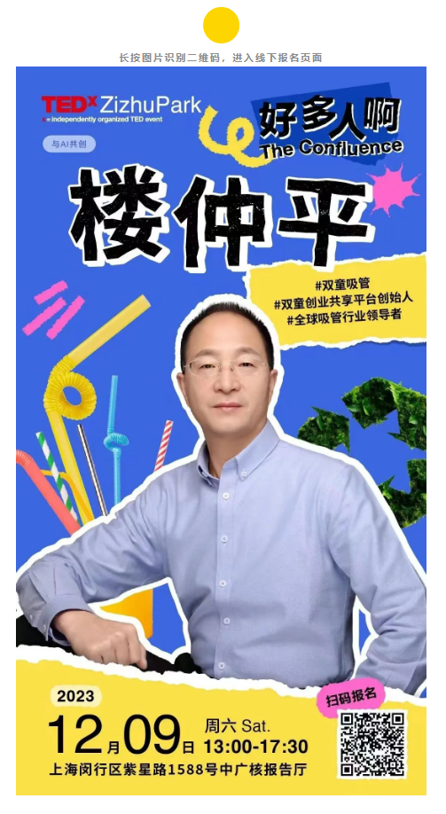 “雙童”創(chuàng)始人樓仲平作為企業(yè)家,關(guān)注員?生活與工作的每?處細(xì)節(jié),在成為吸管行業(yè)領(lǐng)導(dǎo)者的同時(shí),還打造了一家“花園式”工廠,在推動(dòng)工廠節(jié)能減排建設(shè)中做了很多的努?。TEDxZizhuPark組織方敏銳地捕捉到其在商業(yè)領(lǐng)域的成就,特邀作為開場(chǎng)嘉賓演講人分享。