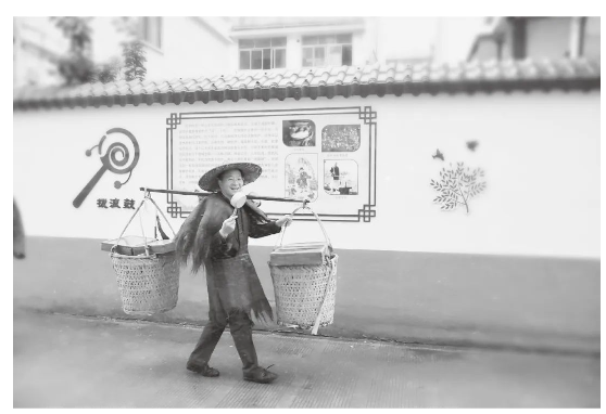 多年后,樓仲平再次拌上雞毛換糖貨郎擔(dān)裝扮