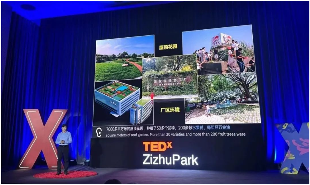 在我精心的設(shè)計(jì)下,公司的每一寸土地都得到了極致的利用,我利用工廠的各個(gè)角落和空間里,建設(shè)了一片片的綠地,我利用部分廠房的屋頂上,建設(shè)了全天候開(kāi)放7000多平米的屋頂花園,栽種了30多個(gè)品種的200多棵水果樹,每年近萬(wàn)斤的水果,全部用于員工分享,讓他們?cè)诠ぷ髦啵辛艘粋€(gè)個(gè)休閑、娛樂(lè)的好去處,成為一個(gè)既適合工作、創(chuàng)業(yè)、又適合生活的花園式社區(qū)工廠,并于2018年榮獲義烏首家“國(guó)家級(jí)綠色工廠”。