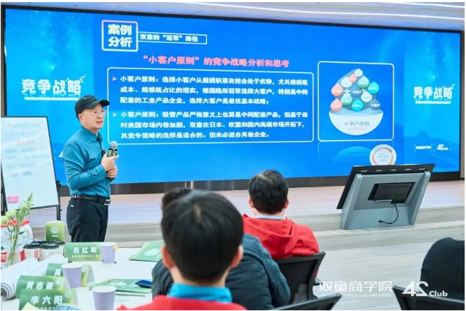 在課程分享中,為了學(xué)員更好理解,鄧地博士將競爭戰(zhàn)略課程概括為賽道問題、定位問題和配稱問題,并且分類給出實(shí)用工具模型和參考案例,讓學(xué)員在課堂自查自己企業(yè)是否屬于“長坡厚雪”賽道,是否適合長期堅(jiān)守,是否有“錢”途;分析自己企業(yè)在所屬賽道的競爭優(yōu)勢,屬于差異化還是總成本領(lǐng)先;以及在未來發(fā)展中如何保持優(yōu)勢,不斷為企業(yè)發(fā)展創(chuàng)造藍(lán)海!鼓勵學(xué)員企業(yè)通過聚焦+差異化的方式,不斷找到屬于自己的藍(lán)海,從而成為該賽道的“隱形冠軍”!