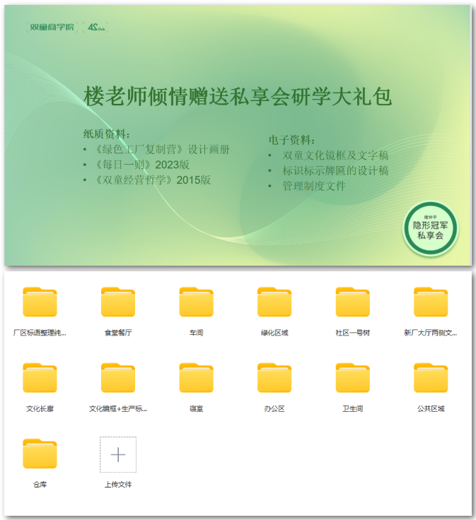除了四小時全方位深度研學外,“雙童”經(jīng)營背后的文化、哲學和其他運行制度,16套文件資料全部整理成冊,毫無保留地交付大家!