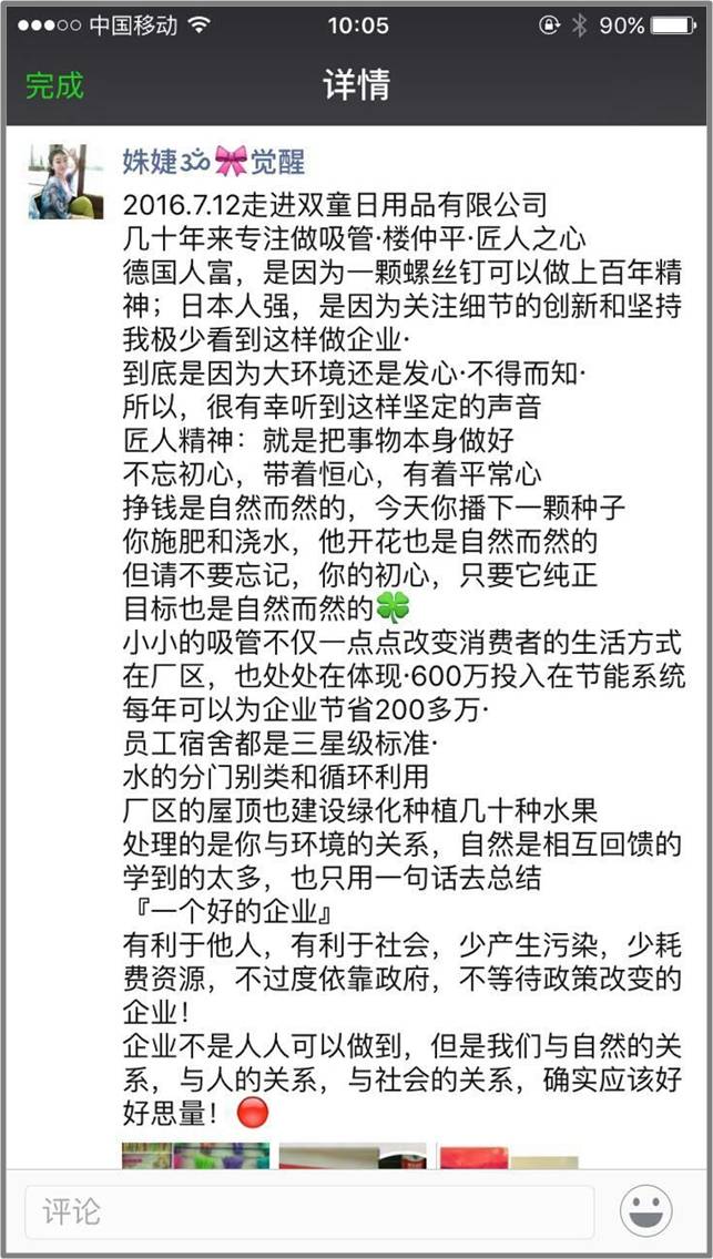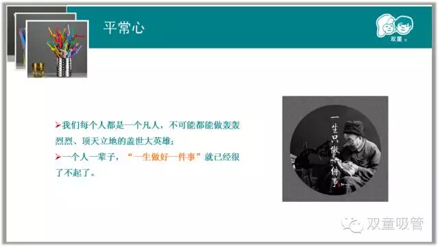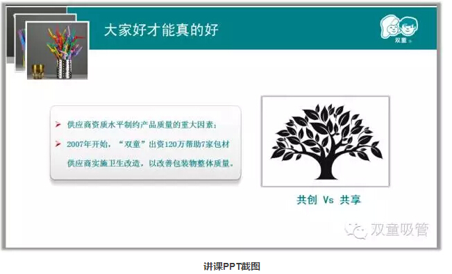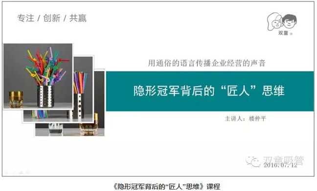 樓總談到自己時(shí)說:“一輩子精力有限,把一根吸管真正做好就行了。”雙童強(qiáng)調(diào)以小博大,“博”不是拼搏的搏,而是博大的博,就是要以博大的胸懷把一件事情做好!