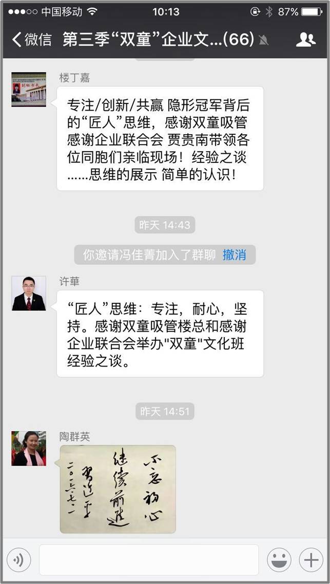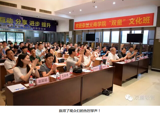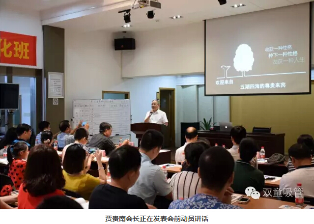 賈會(huì)長回顧了去年在”雙童“舉辦的兩期文化班取得的效果,也呼吁在座的企業(yè)主學(xué)習(xí)“雙童”的工匠精神。一席話下來,贏得了在座聽眾的熱烈掌聲!