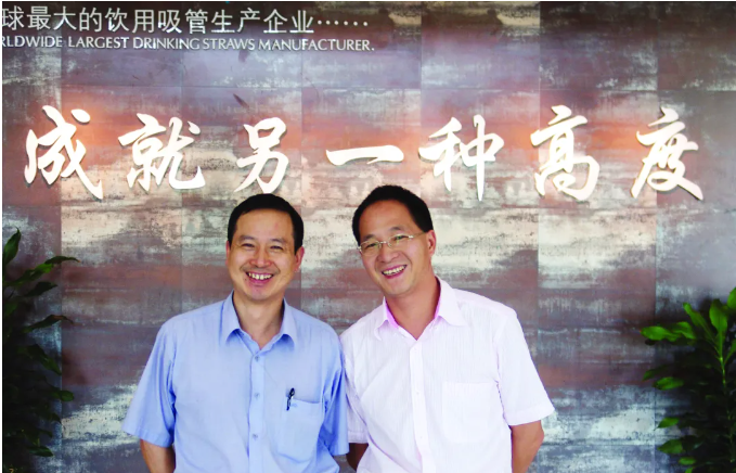 第二天早上,他就背著電腦從他租的房子里搬到我工廠來。當(dāng)時我的工廠還很小,七八十人,但就因為他的引進(jìn),完全改變了雙童!那一年雙童從內(nèi)貿(mào)轉(zhuǎn)到外貿(mào),利潤率大幅提高!因為他的英語、數(shù)字化應(yīng)用這些東西都很熟練,我們兩個人搭檔強(qiáng)強(qiáng)聯(lián)合,“雙童”在99年、00年、01年這三年,每年都能翻一番!因為吸管結(jié)緣,惺惺相惜