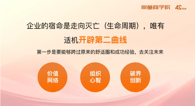 企業(yè)的宿命是走向滅亡,唯有適機開辟“第二曲線”才能讓企業(yè)走得長遠。這就需要創(chuàng)業(yè)者首先思想“開門”,轉(zhuǎn)變思維方式,跳出成功經(jīng)驗,為企業(yè)奠定新的增長基礎(chǔ)!