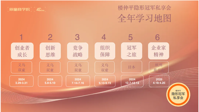 《樓仲平隱形冠軍私享會》在交付過程中,會根據(jù)“開門”、“破圈”、“取舍”、“進化”、“出發(fā)”、“開悟”等6個模塊的不同主題,每期邀請一位飛行嘉賓與樓仲平老師一起完成,引導(dǎo)各位同學(xué)不斷打開思維,實現(xiàn)一次次成長蝶變。