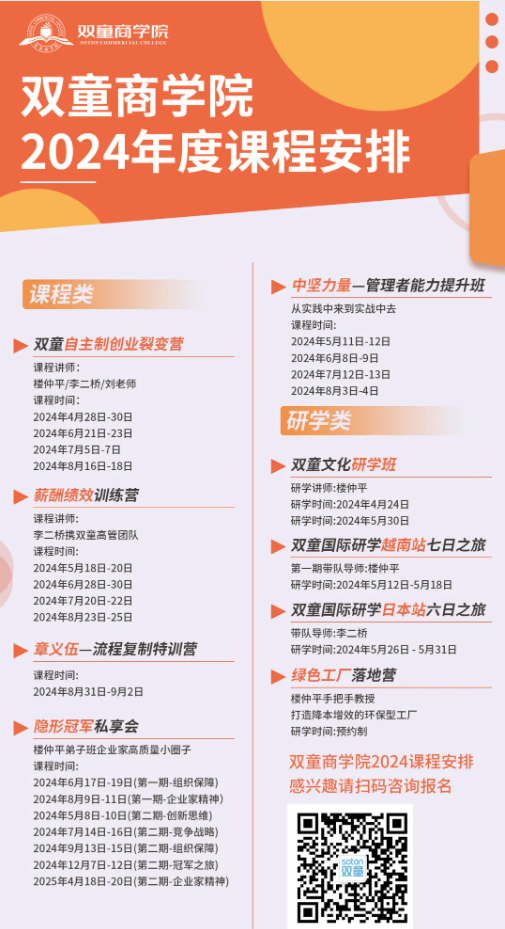目前,這套機制已經被雙童商學院打磨成了一套非常成熟的、可復制、可實踐的課程——《自主制創(chuàng)業(yè)裂變營》。現在該課程已經是目前已經賦能了1700+家中小企業(yè)成長!
